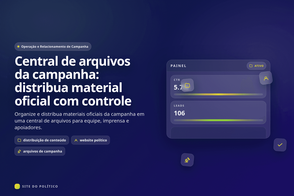 Atalho do cluster: este conteúdo se conecta ao guia pilar Website político e campanha política: guia pilar completo de SEO, tráfego pago e conversão. Para aprofundar esta etapa, veja também Como criar um site para candidato em 5 minutos e Como integrar Instagram e notícias no site.