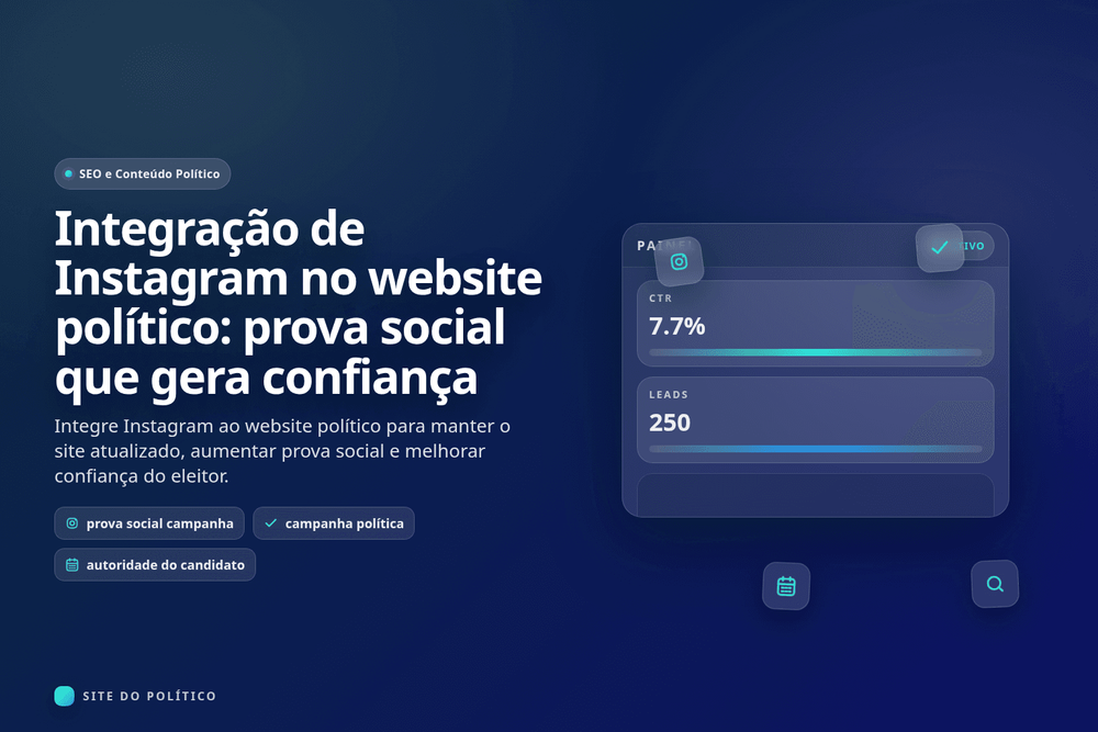 Atalho do cluster: este conteúdo se conecta ao guia pilar Website político e campanha política: guia pilar completo de SEO, tráfego pago e conversão. Para aprofundar esta etapa, veja também Como integrar Instagram e notícias no site e SEO para candidato: como aparecer no Google.