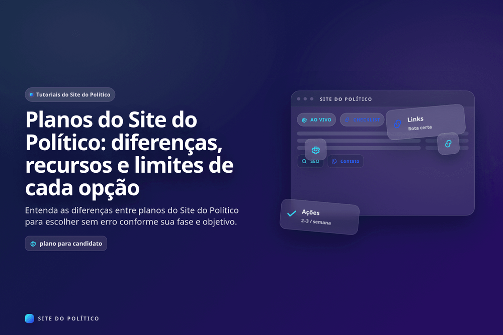 Este tutorial faz parte da central de ajuda do produto. Para visão completa, comece em Tutorial completo do Site do Político: do zero ao site publicado e depois aprofunde em qual plano escolher por perfil e tutorial para agências.