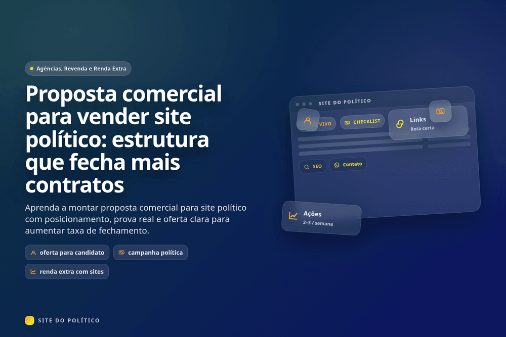 Aprenda a montar proposta comercial para site político com posicionamento, prova real e oferta clara para aumentar taxa de fechamento.