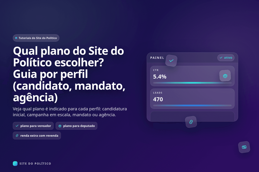 Este tutorial faz parte da central de ajuda do produto. Para visão completa, comece em Tutorial completo do Site do Político: do zero ao site publicado e depois aprofunde em planos do Site do Político e tutorial para agências.
