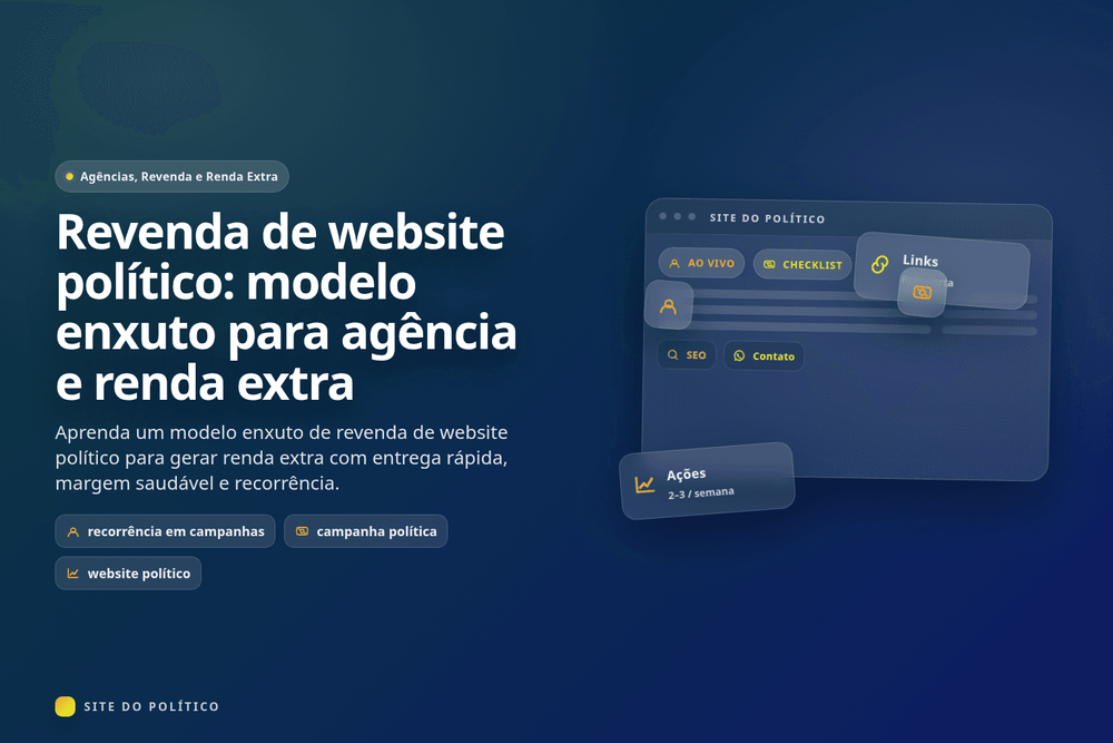 Aprenda um modelo enxuto de revenda de website político para gerar renda extra com entrega rápida, margem saudável e recorrência.