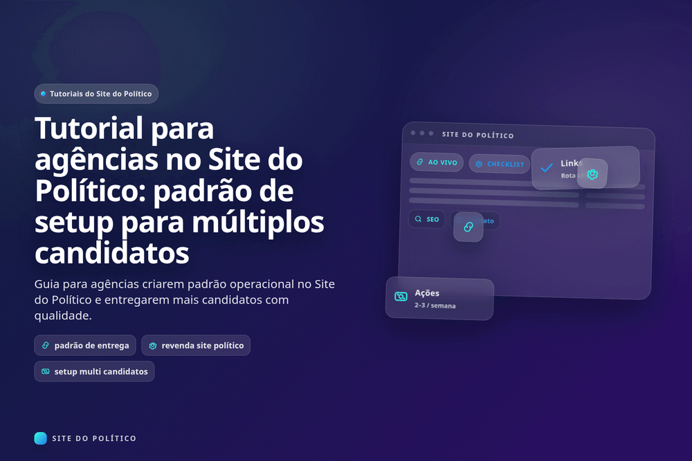 Este tutorial faz parte da central de ajuda do produto. Para visão completa, comece em Tutorial completo do Site do Político: do zero ao site publicado e depois aprofunde em planos do Site do Político e qual plano escolher por perfil.